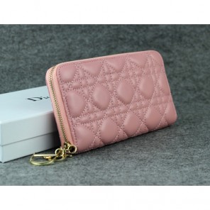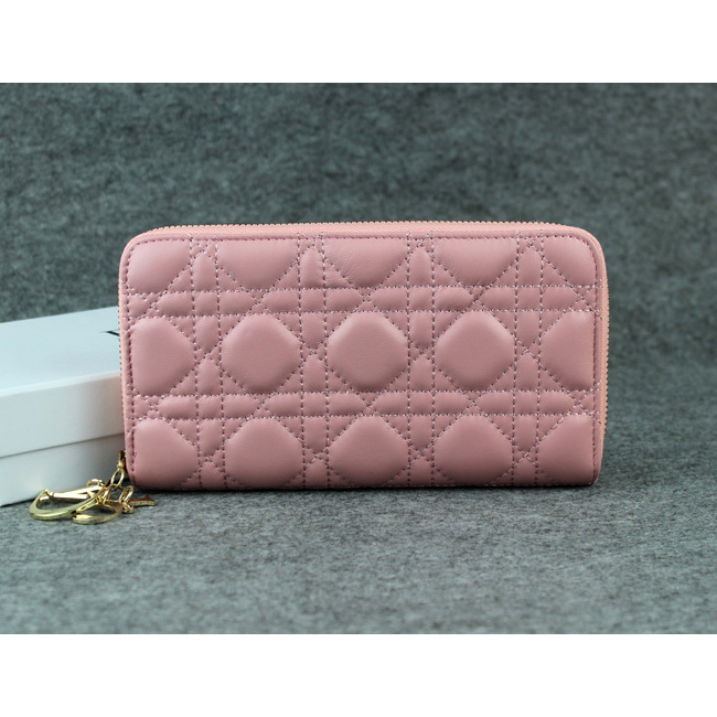 Dior Sheepskin Leather Long Leather Wallet 1098 Pink