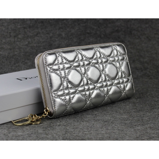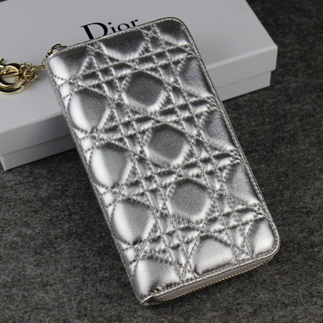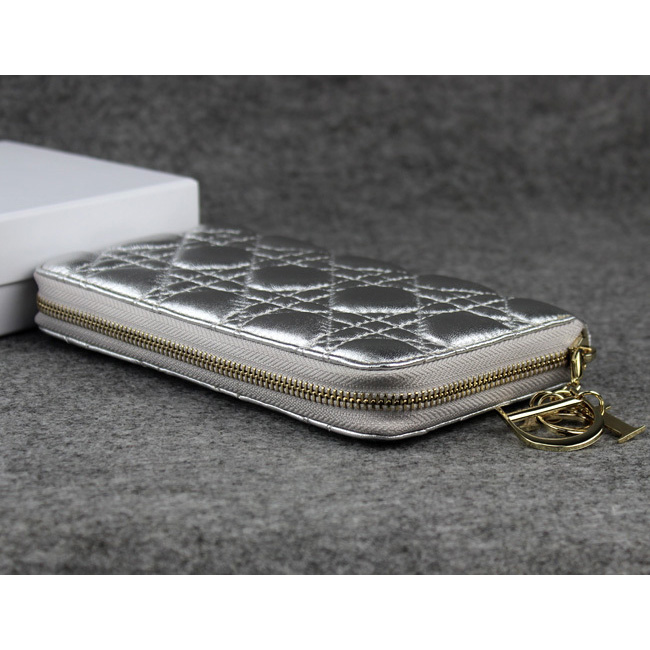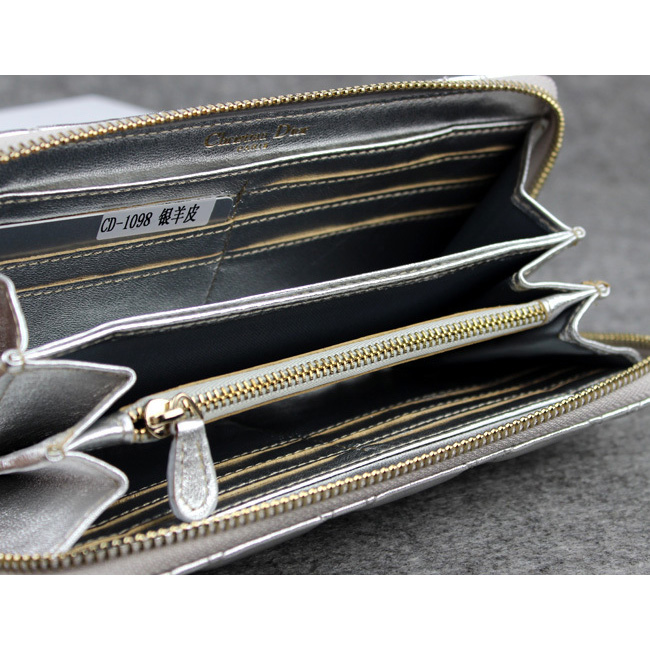 Dior Sheepskin Leather Long Leather Wallet 1098 Silver