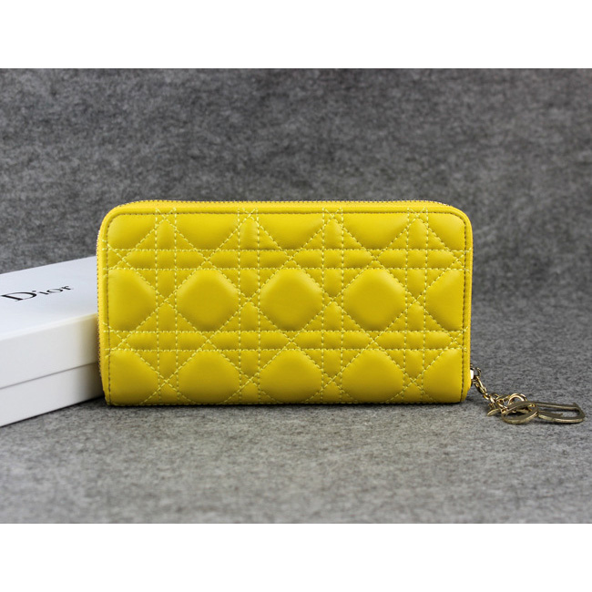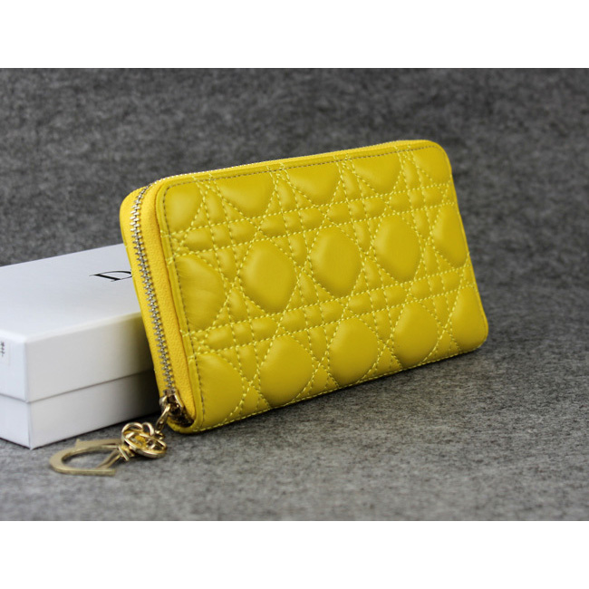 Dior Sheepskin Leather Long Leather Wallet 1098 Yellow