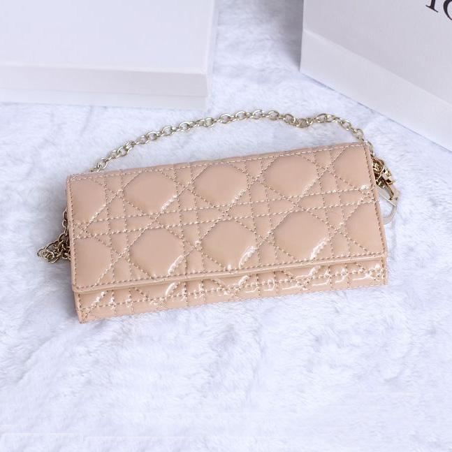 Dior Sheepskin Leather Long Leather Wallet with chain 1078 Apricot