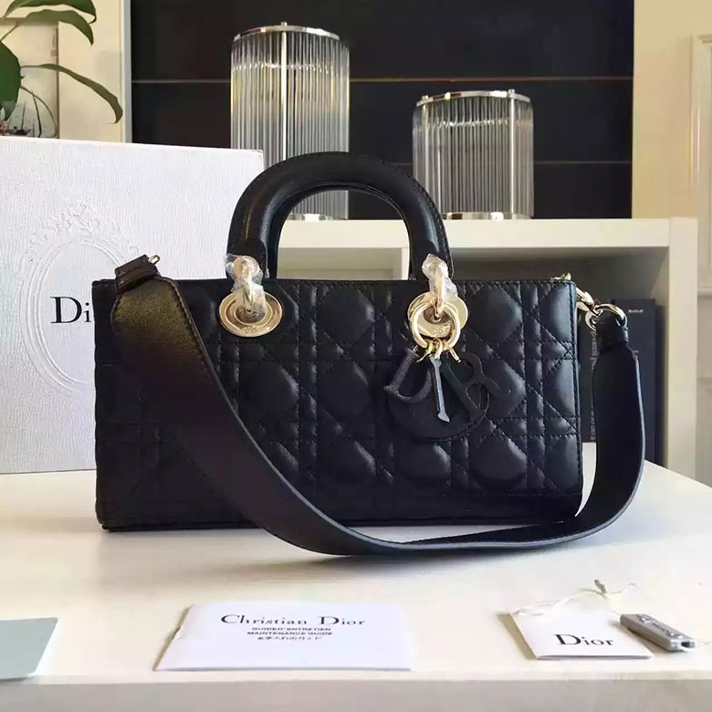 Thanks to its slender shape, this bag embodies the new silhouette of the Winter 2016 catwalk show. This black lambskin bag is enhanced by iconic Dior 鈥淐annage鈥 stitching. Its wide shoulder strap allows chic shoulder or hand carry.