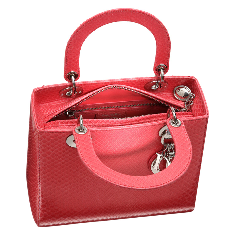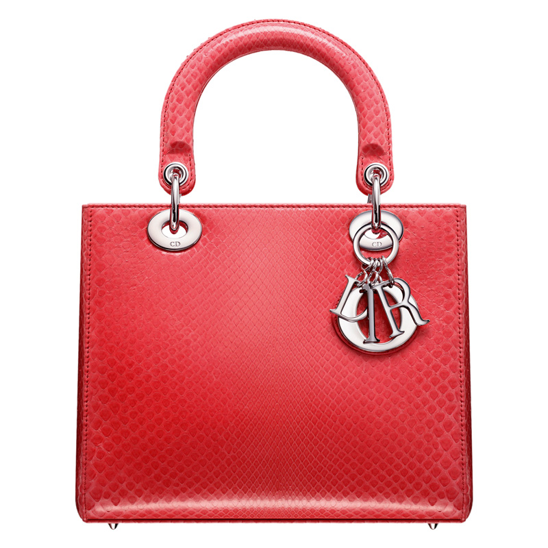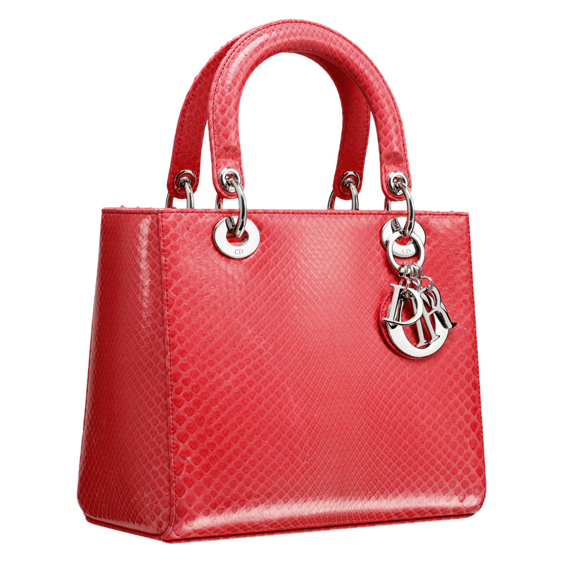 A timeless and unique work of art, the 'Lady Dior' bag is imbued with the Couture spirit of Dior. Meticulously crafted by hand, the bag in precious glossy light-coral python combines luxury with sophistication. Carry by hand, on the wrist or arm for unbeatable elegance