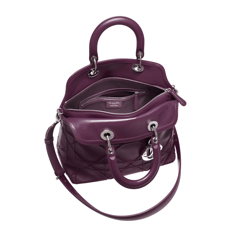Named after the fashion designer's home town, the "Dior Granville" collection captures both the elegance and the origins of Dior. This bag in purple lambskin features distinctive "Cannage" stitching. To be held in the hand or worn on the shoulder thanks to a long strap concealed inside.