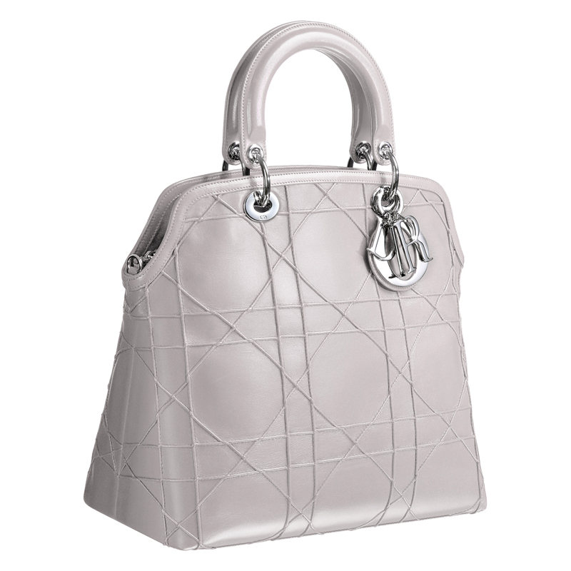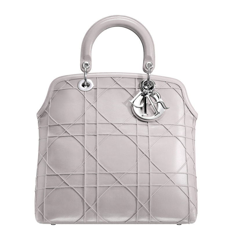 - This grey lambskin bag with 'Cannage' motifs perfectly captures the Dior Couture spirit.For hand or shoulder carry.