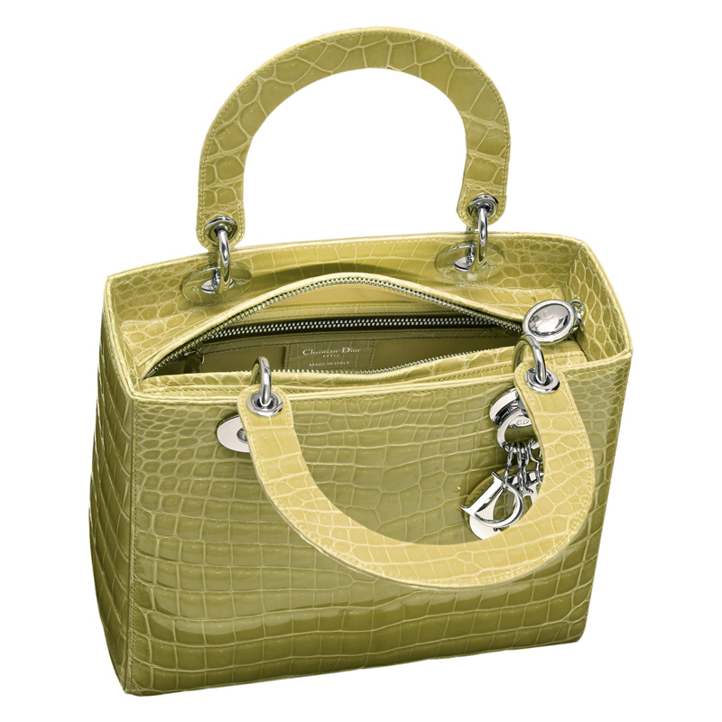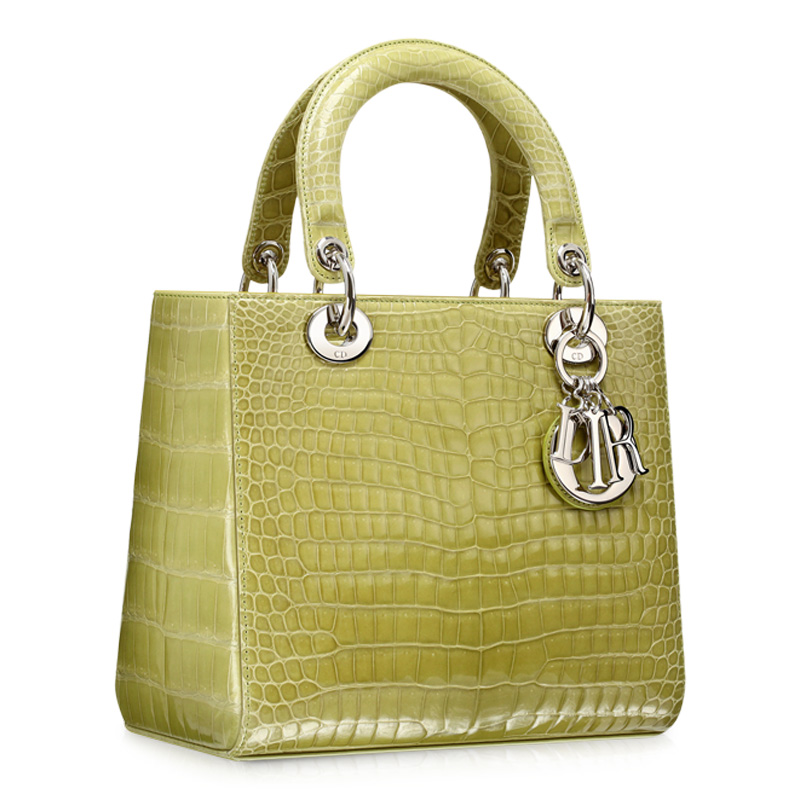 A timeless and unique work of art, the 'Lady Dior' bag is imbued with the Couture spirit of Dior. Meticulously crafted by hand, the bag in precious green crocodile combines luxury with sophistication. Carry by hand, on the wrist or arm for unbeatable elegance