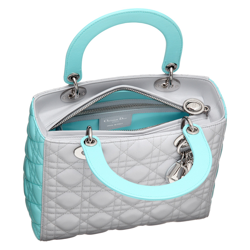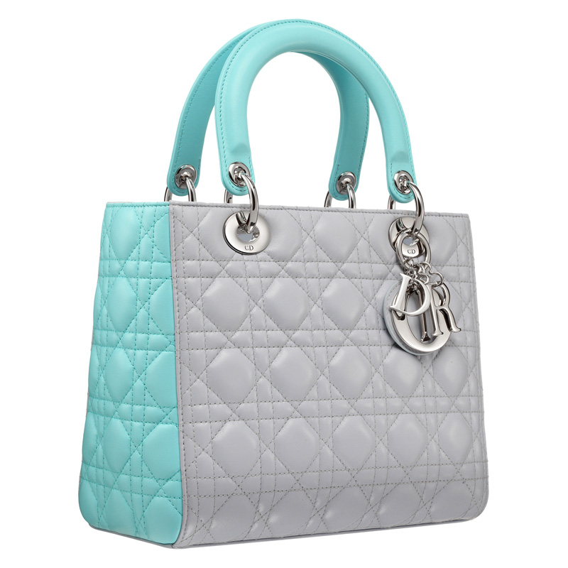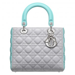 Gris Poudre and Bleu Azur leather Lady Dior bag