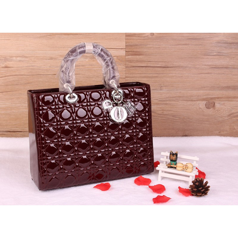 Lady Dior Bag Medium Bag D1667 Burgundy Patent Leather Silver
