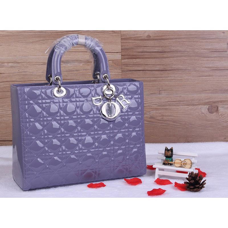 Lady Dior Bag Medium Bag D1667 DarkPurple Patent Leather Silver
