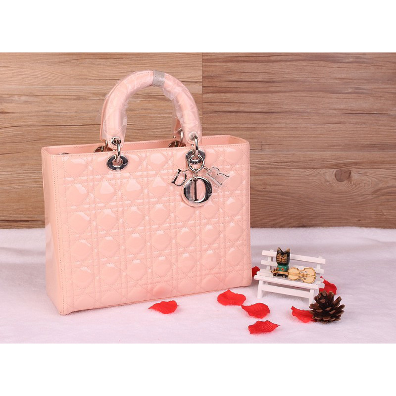 Lady Dior Bag Medium Bag D1667 Lightpink Patent Leather Silver