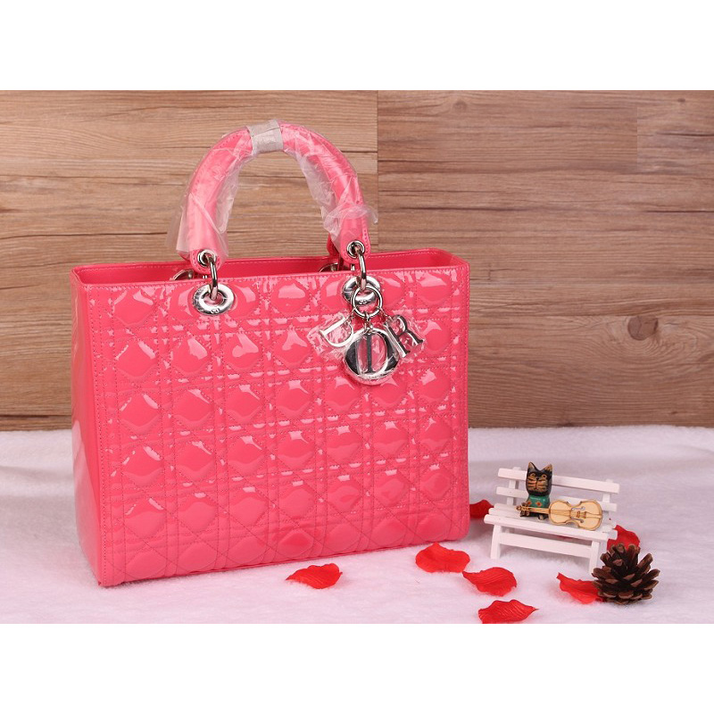 Lady Dior Bag Medium Bag D1667 Peach Patent Leather Silver