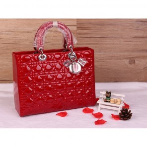Lady Dior Bag Medium Bag D1667 Red Patent Leather Silver