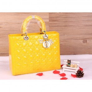 Lady Dior Bag Medium Bag D1667 Yellow Patent Leather Silver