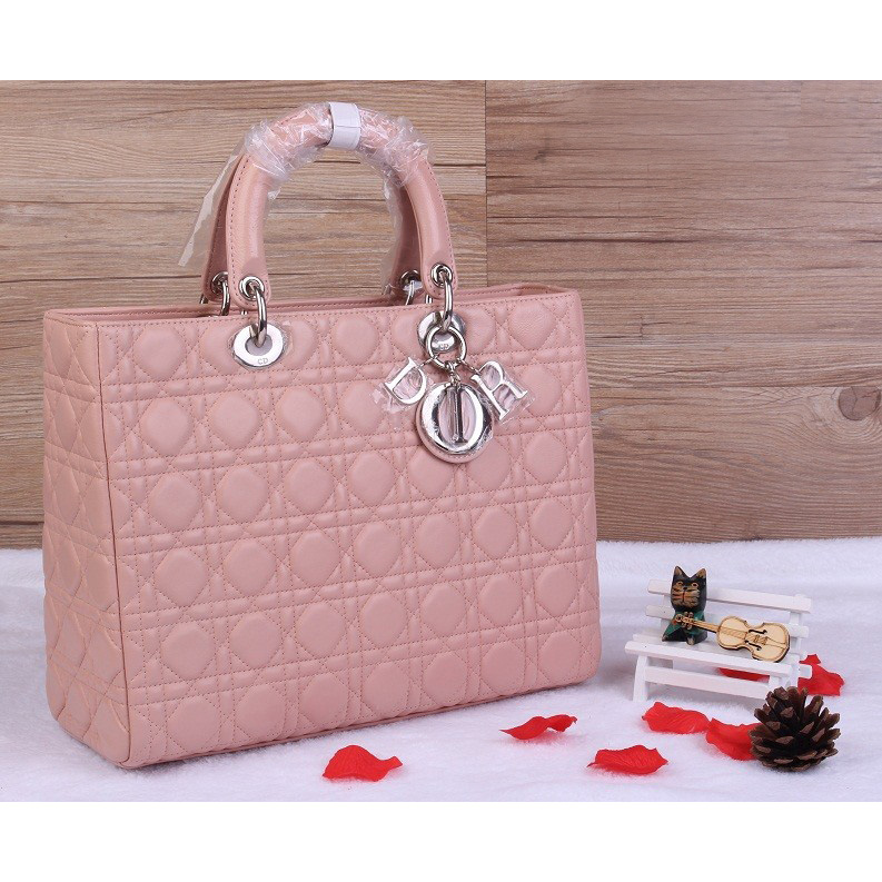 Lady Dior Bag Medium Bag Sheepskin Leather D1667 Cherry pink