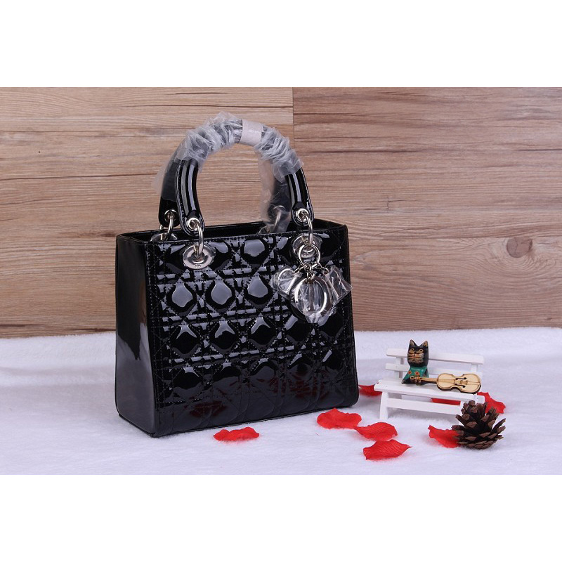 Lady Dior Bag Patent leather D1655 Black with Silver