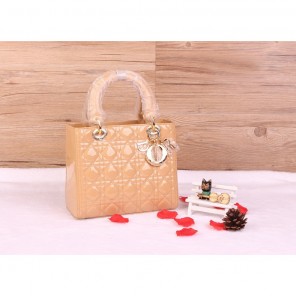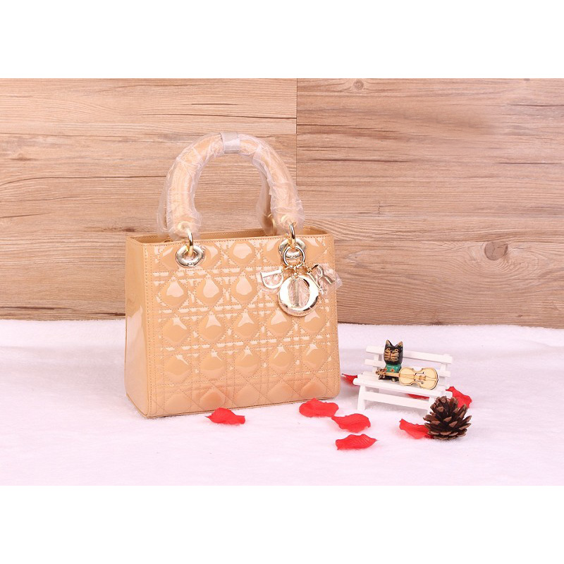 Lady Dior Bag Patent leather D1655 Champagne with Gold