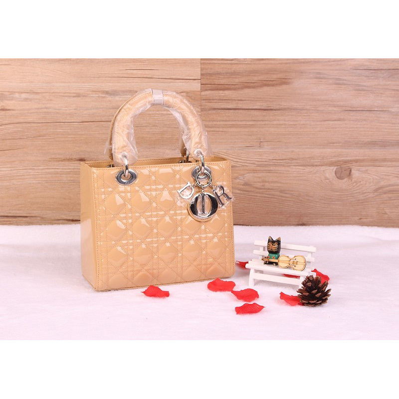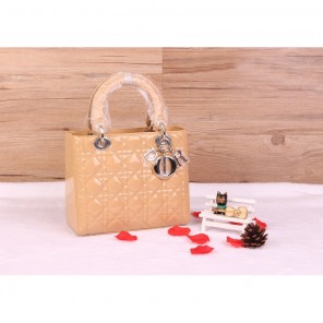 Lady Dior Bag Patent leather D1655 Champagne with Silver