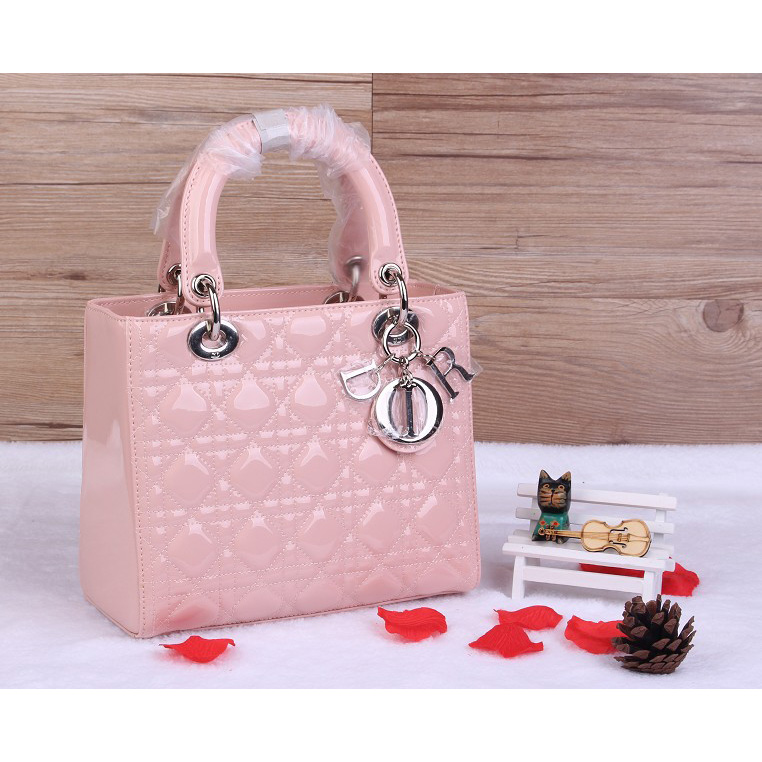 Lady Dior Bag Patent leather D1655 Cherry pink with Silver