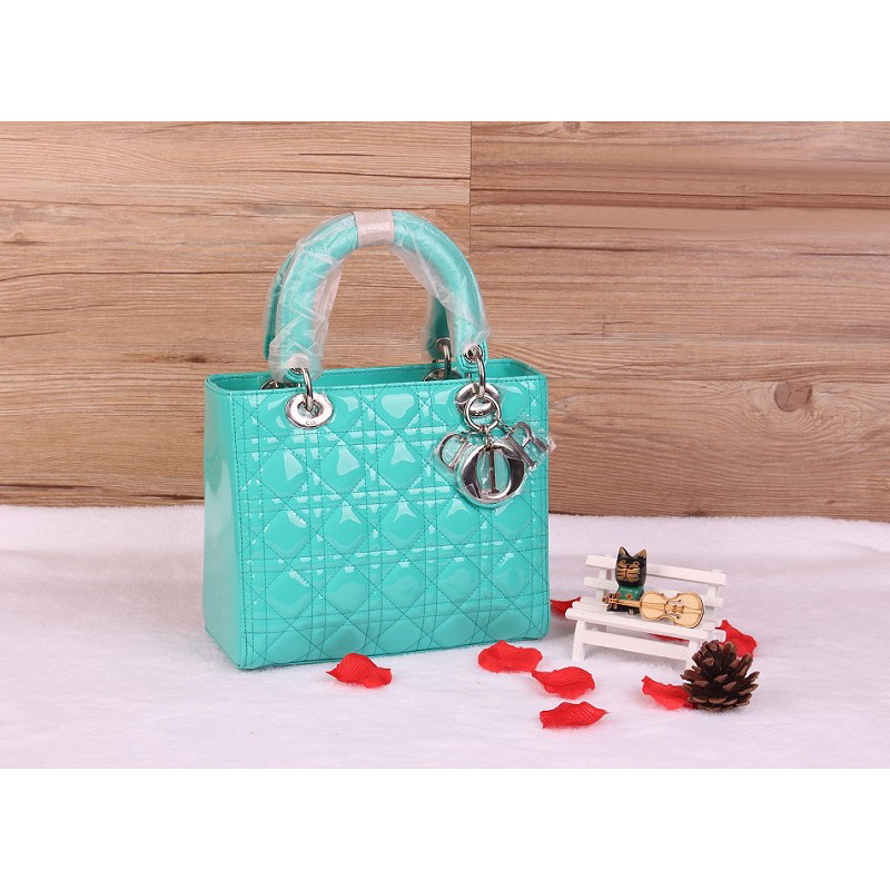 Lady Dior Bag Patent leather D1655 LakeGreen with Silver