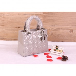 Lady Dior Bag Patent leather D1655 Pearly Gray with Silver