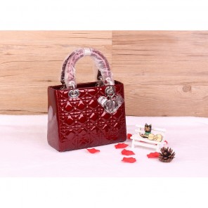 Lady Dior Bag Patent leather D1655 Pearly Red with Silver