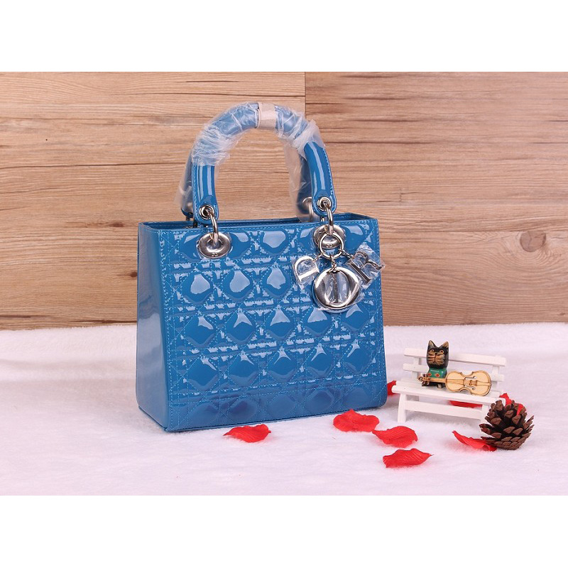 Lady Dior Bag Patent leather D1655 SkyBlue with Silver