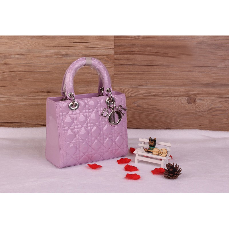 Lady Dior Bag Patent leather D1655 Taro Purple with Silver