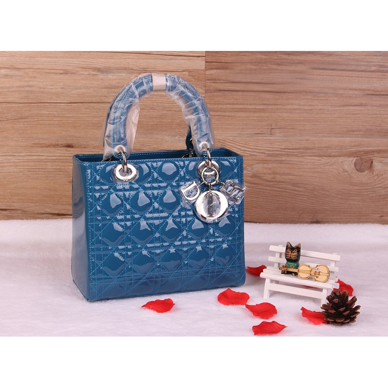 Lady Dior Bag Patent leather D1655 Ultimate Blue with Silver