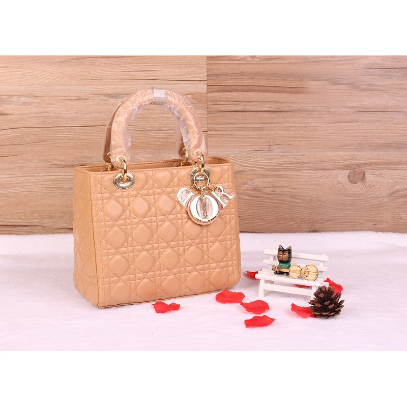 Lady Dior Bag Sheepskin Bag D1655 Apricot with Gold