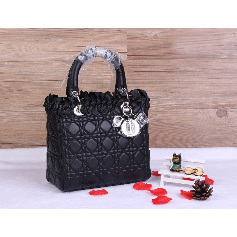 Lady Dior Bag Sheepskin Bag D1655 Black with Silver