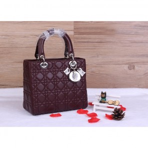 Lady Dior Bag Sheepskin Bag D1655 Burgundy with Silver