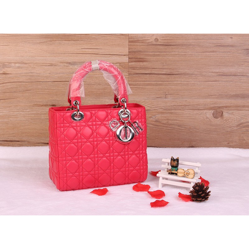 Lady Dior Bag Sheepskin Bag D1655 Carmine with Silver