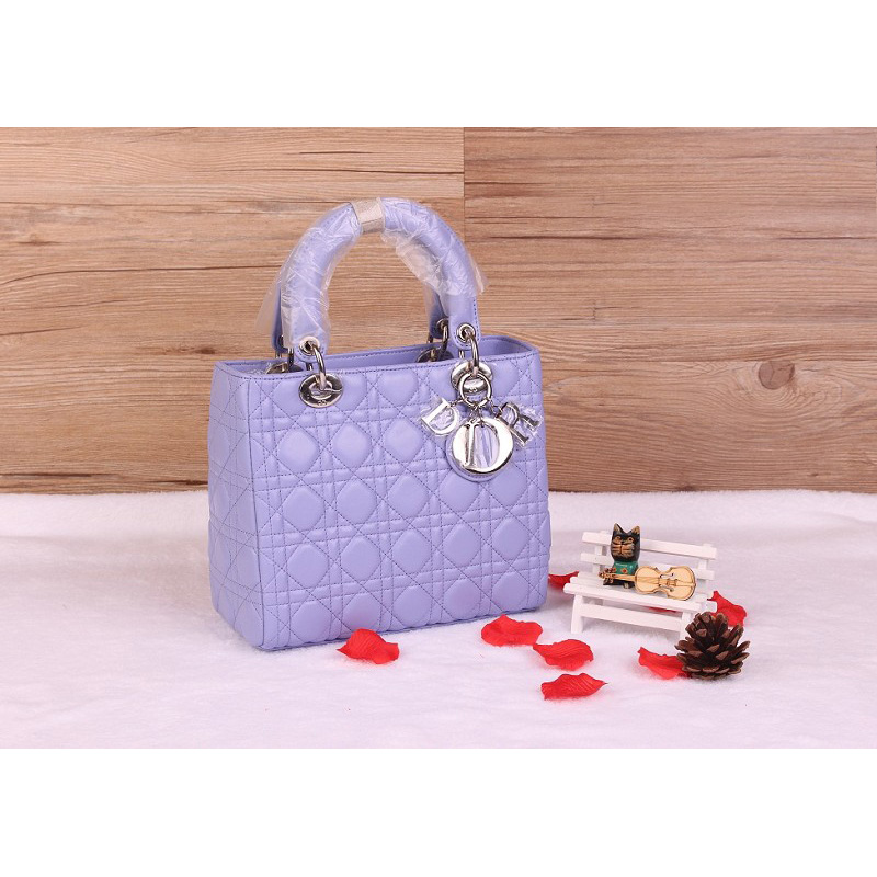 Lady Dior Bag Sheepskin Bag D1655 Dark Lavender with Silver