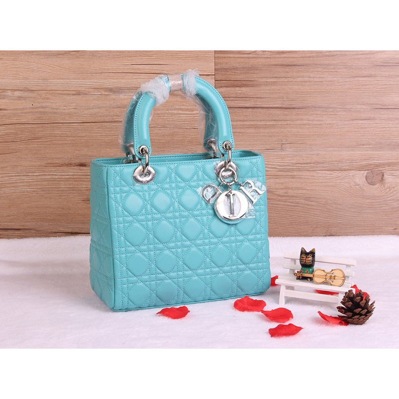 Lady Dior Bag Sheepskin Bag D1655 LakeGreen with Silver