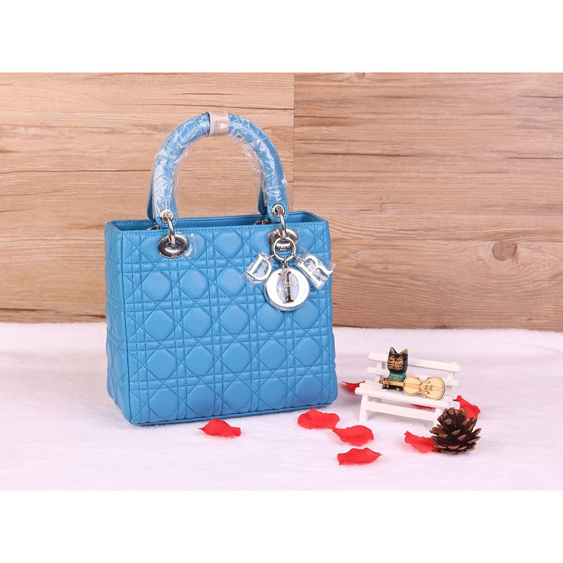 Lady Dior Bag Sheepskin Bag D1655 LightBlue with Silver