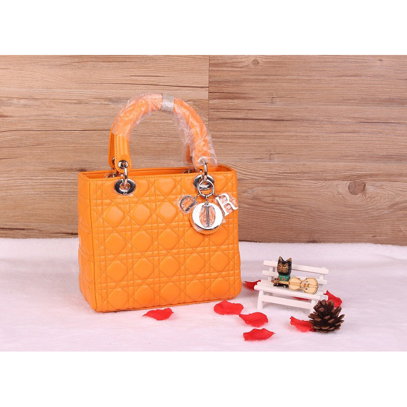 Lady Dior Bag Sheepskin Bag D1655 Mango Yellow with Silver