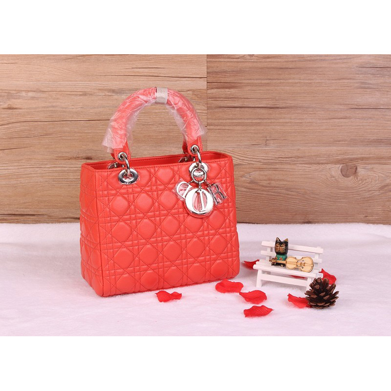 Lady Dior Bag Sheepskin Bag D1655 OrangeRed with Silver