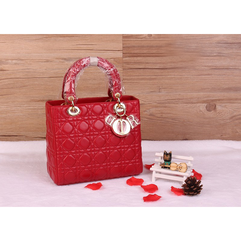 Lady Dior Bag Sheepskin Bag D1655 Red with Gold