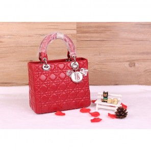 Lady Dior Bag Sheepskin Bag D1655 Red with Silver