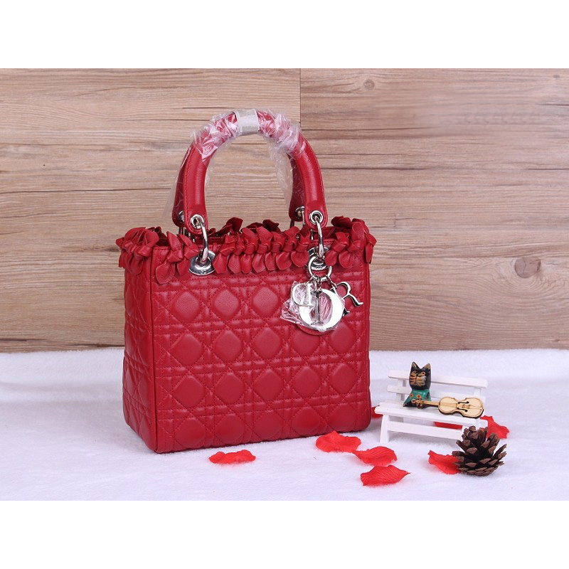 Lady Dior Bag Sheepskin Bag D1655 Red with Silver