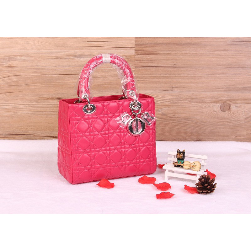 Lady Dior Bag Sheepskin Bag D1655 Rose with Silver
