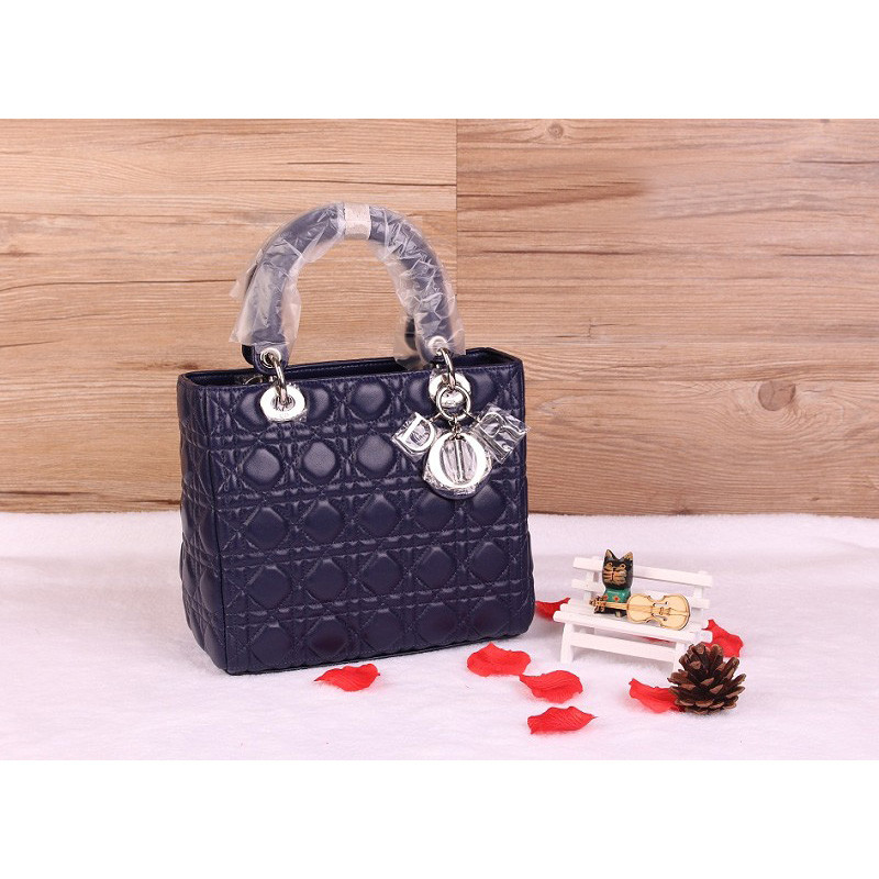Lady Dior Bag Sheepskin Bag D1655 Royalblue with Silver