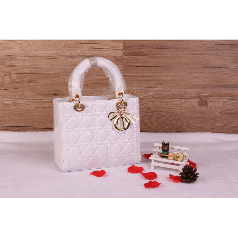 Lady Dior Bag Sheepskin Bag D1655 White with Gold