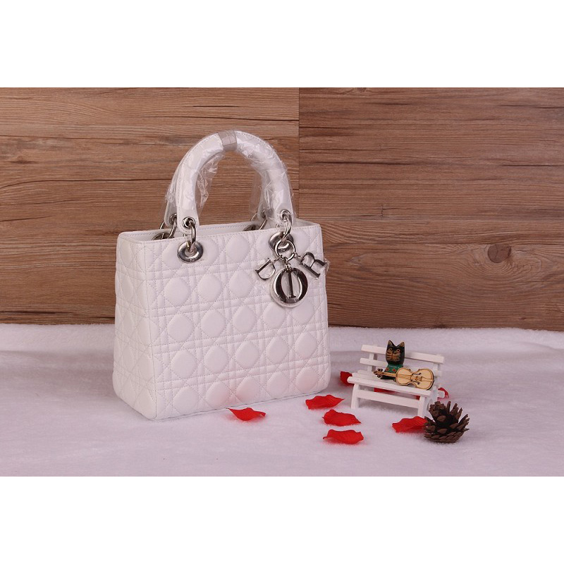 Lady Dior Bag Sheepskin Bag D1655 White with Silver
