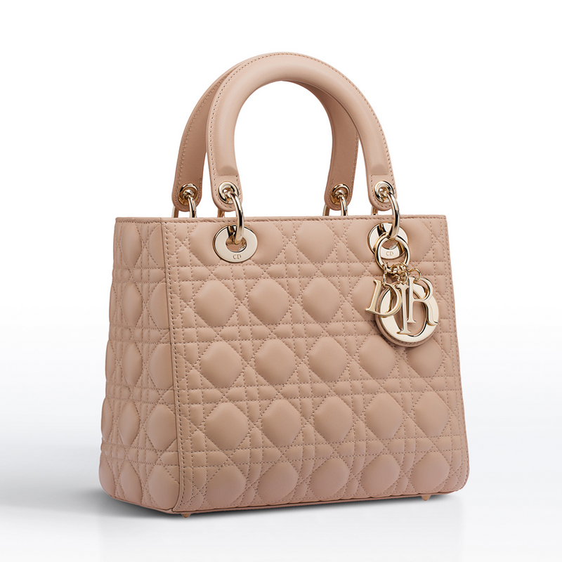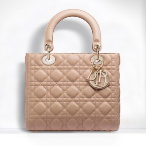 A timeless and unique work of art, the "Lady Dior" bag is imbued with the Couture spirit of Dior. Meticulously crafted by hand, this Nude lambskin bag is enhanced by iconic Dior "Cannage" stitching. It can be carried by hand or worn on the shoulder for unrivalled elegance.