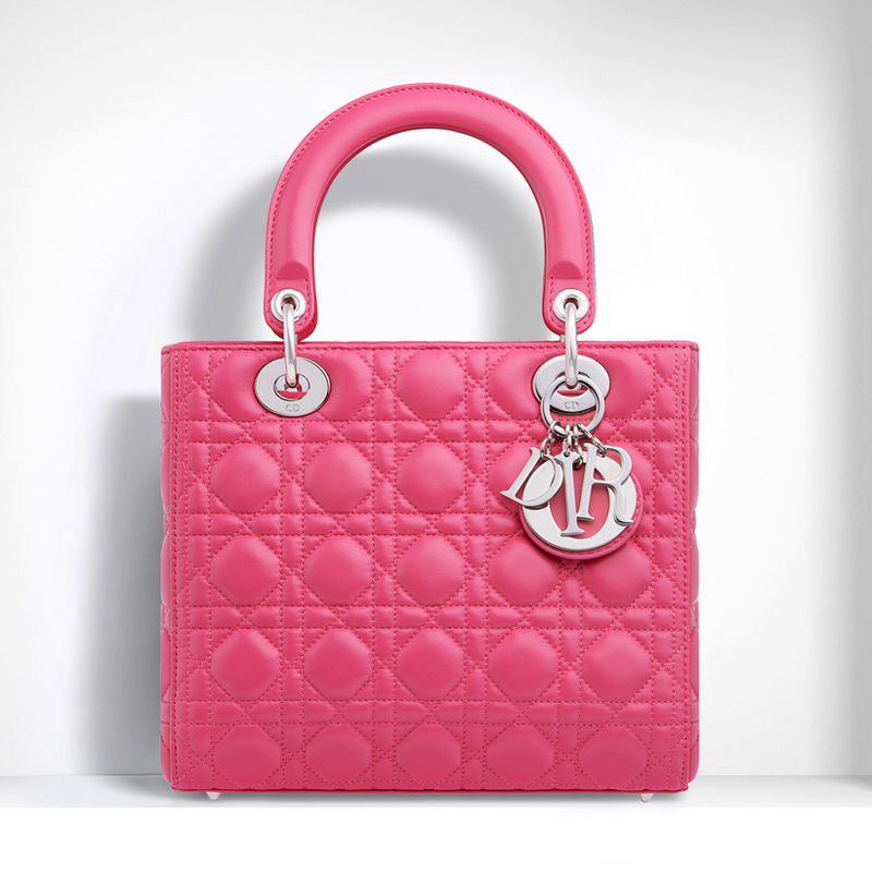 A timeless and unique work of art, the "Lady Dior" bag is imbued with the Couture spirit of Dior. Meticulously crafted by hand, this Rose The lambskin bag is enhanced by iconic Dior "Cannage" stitching. It can be carried by hand or worn on the shoulder for unrivalled elegance.