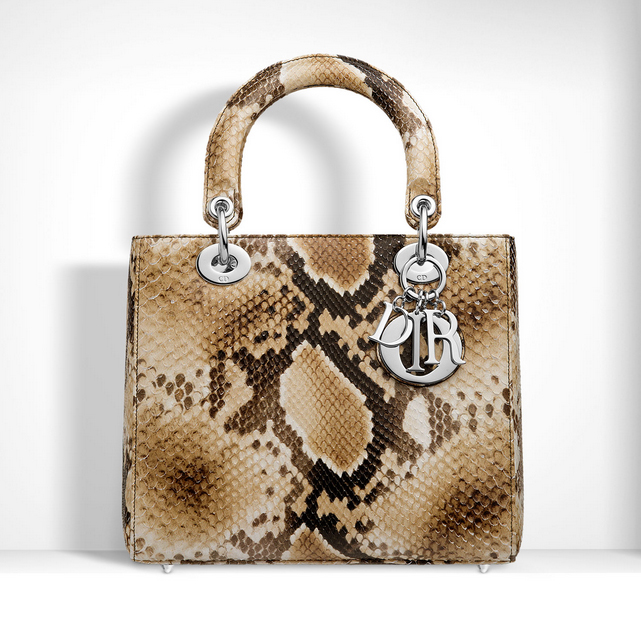 A timeless and unique work of art, the "Lady Dior" bag is imbued with the Couture spirit of Dior. Meticulously crafted by hand, this precious gold-tone python bag combines luxury with sophistication. It can be carried by hand or worn on the shoulder for unrivalled elegance.