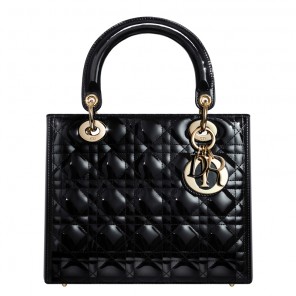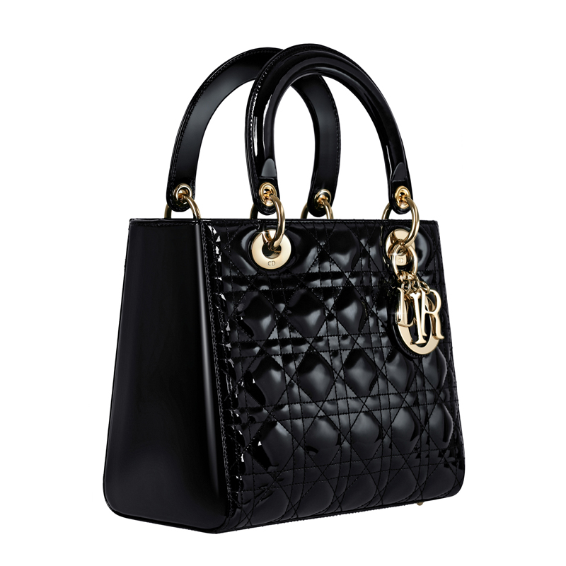 - Meticulously hand crafted, this black quilted patent leather bag is adorned with Dior - signature 'Cannage' stitching.