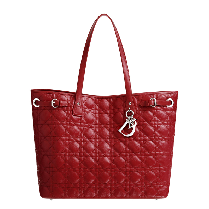 The "Dior Panarea" collection is distinguished by its pure lines and its practicality,This large shiny burgundy shopping bag is adorned with the Cannage stitching emblematic of Dior. Practical and modern, its shape can be changed thanks to an inner clip system.
