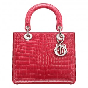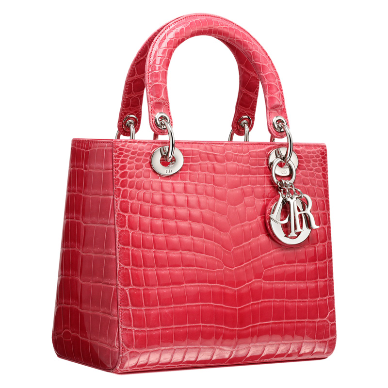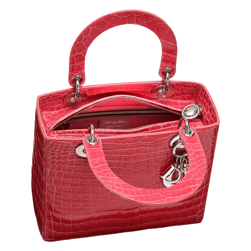 A timeless and unique work of art, the 'Lady Dior' bag is imbued with the Couture spirit of Dior. Meticulously crafted by hand, the bag in precious light coral crocodile combines luxury with sophistication. Carry by hand, on the wrist or arm for unbeatable elegance
