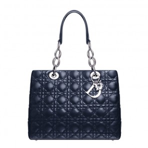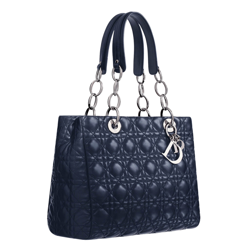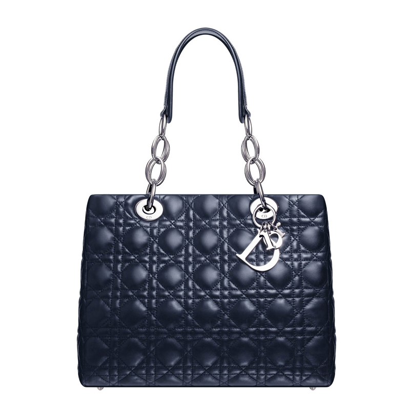 - This bag in navy quilted lambskin is adorned with 'Cannage' stitching.